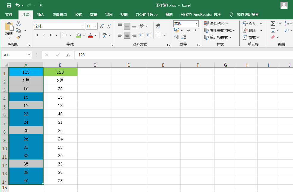 选中第一列数据,使用条件格式中的“使用公式确定要设置格式的单元格”,输入公式: